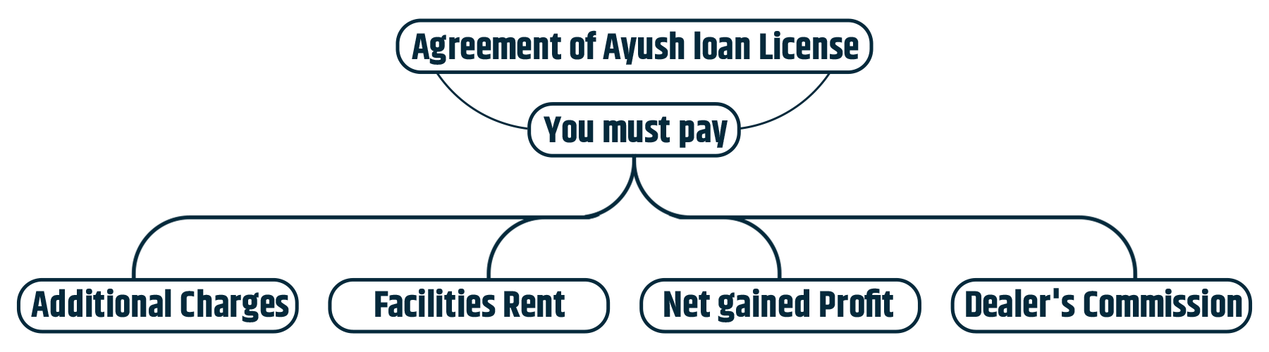 Also, the AYUSH Loan License holder must pay out the following as per the agreement with the Licensor: