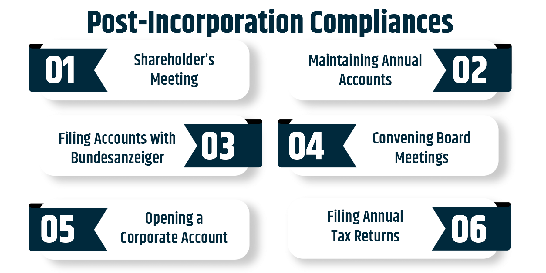 Heed the following compliances that must be conformed to after the due procedure of company registration in Germany.