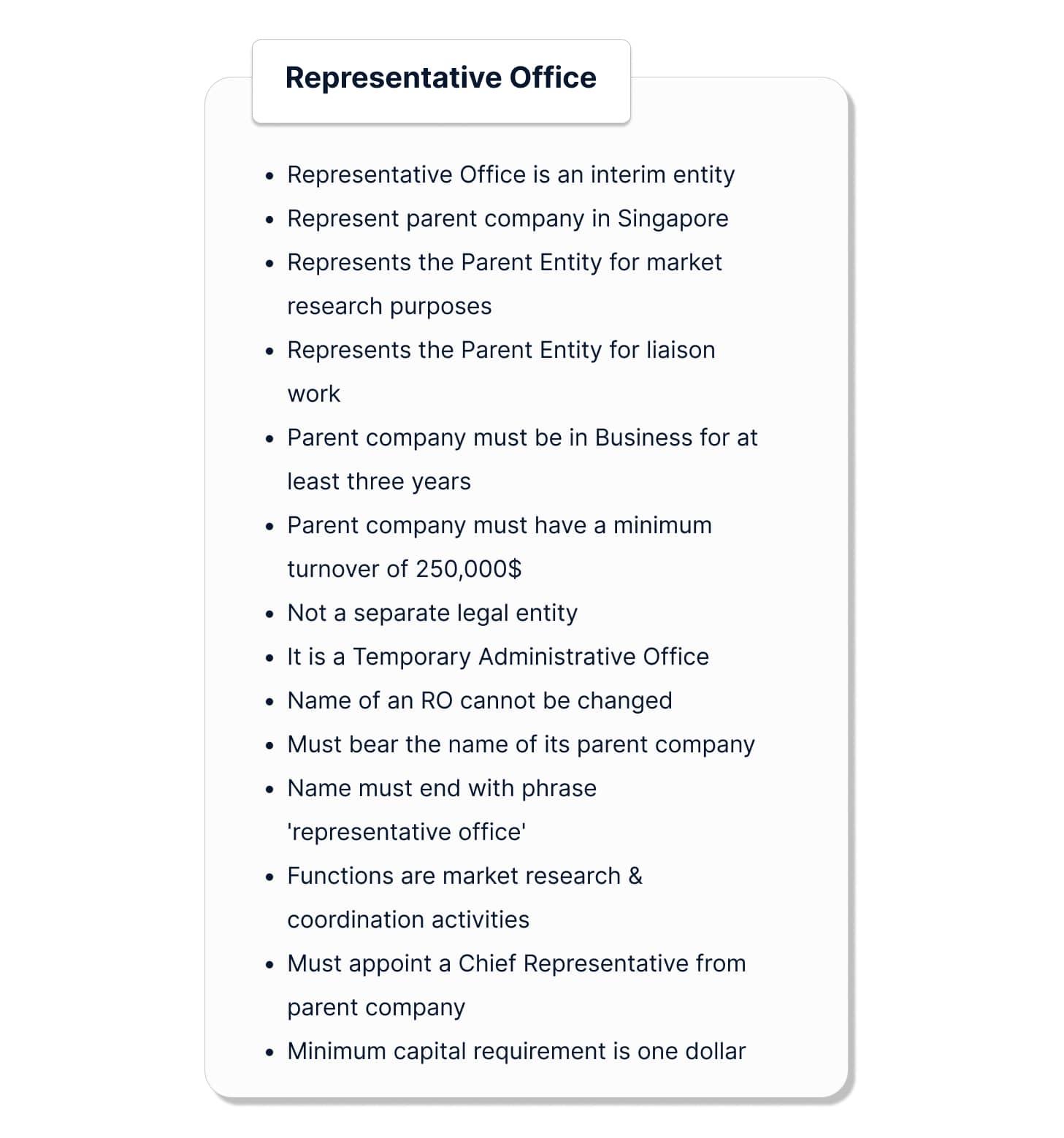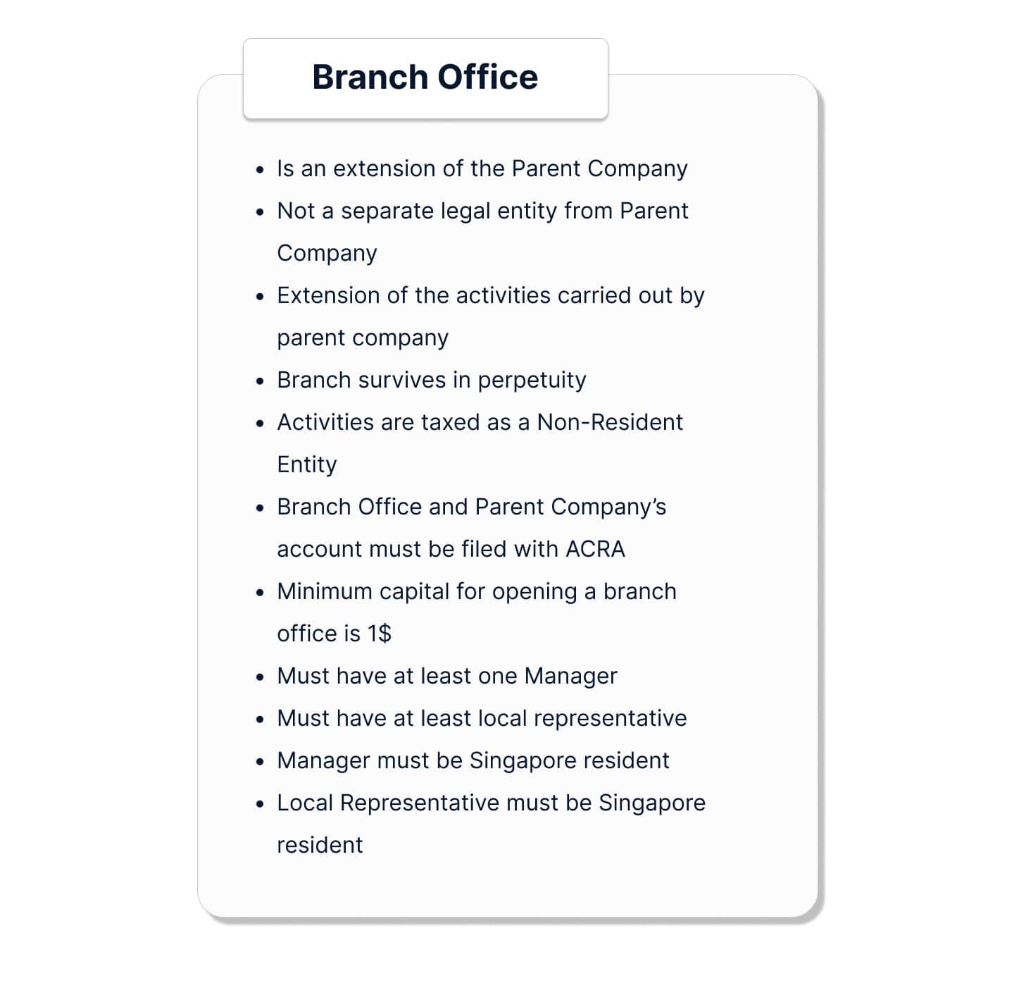 - Most foreign investors adopted such a model for expanding their businesses in Singapore.