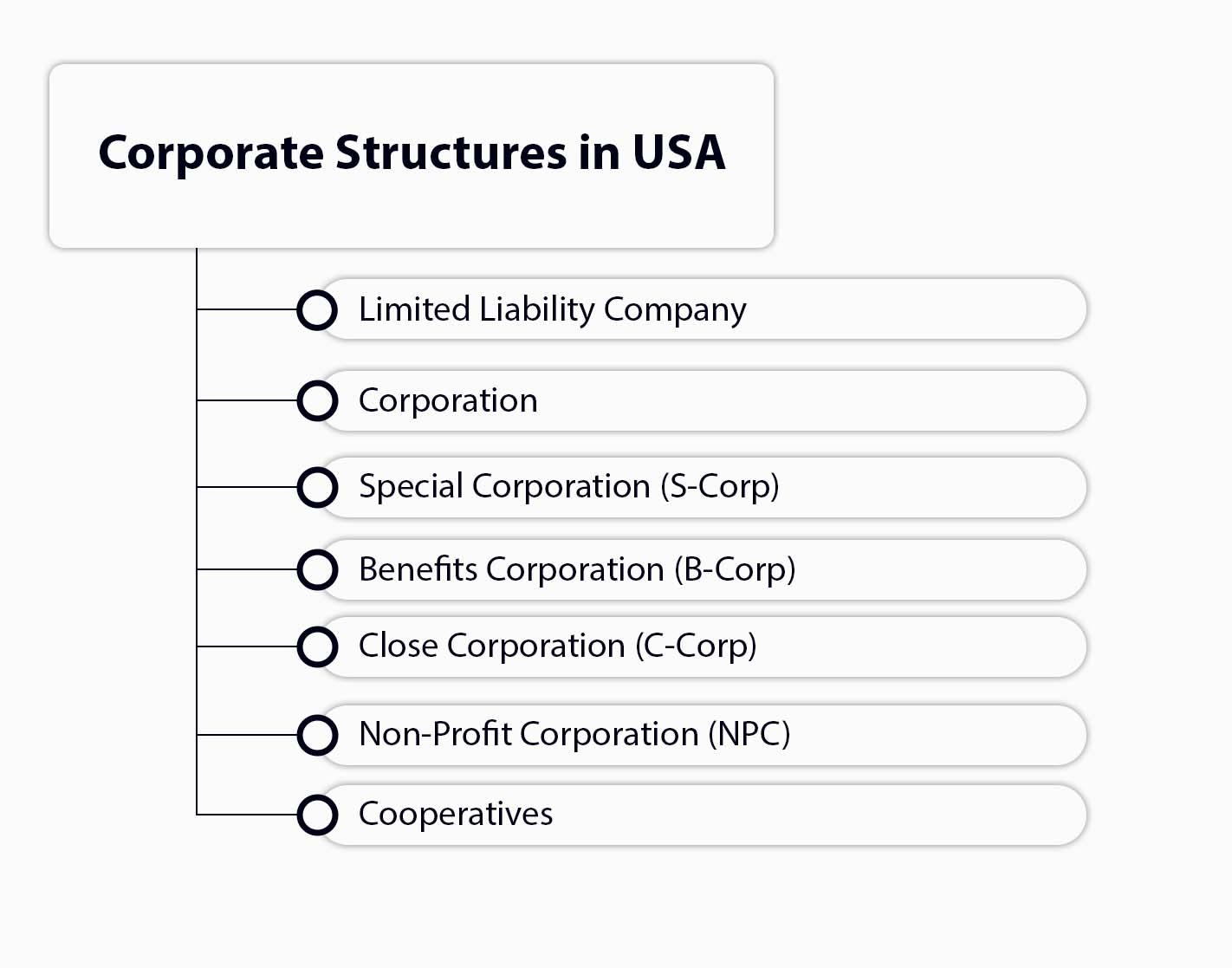 The US Legislation defines the following major types of companies commonly adopted by businesses in the United States of America: