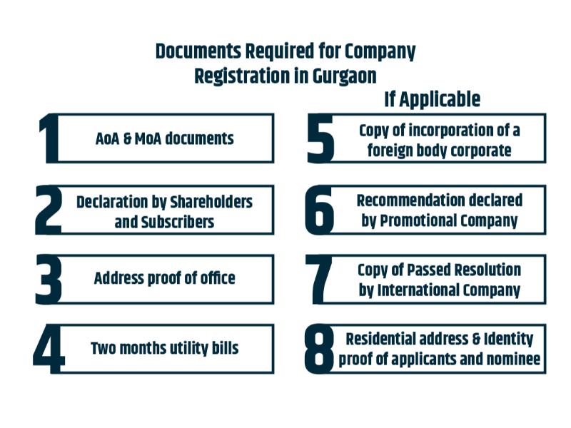 The following documents are required to register a company in Gurgaon: