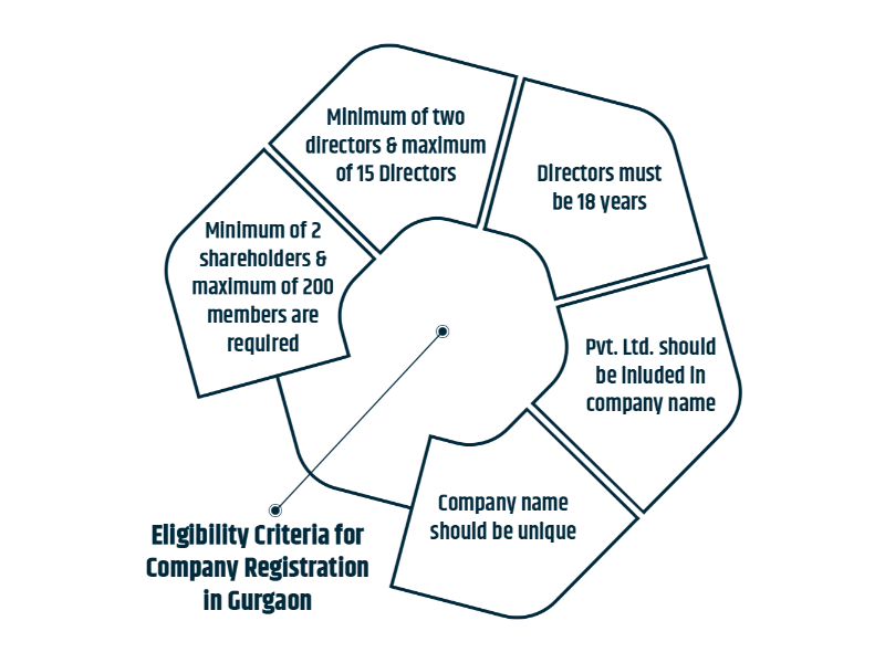 As per the Companies Act, 2013, the following criteria must be fulfilled to register a company in Gurgaon: