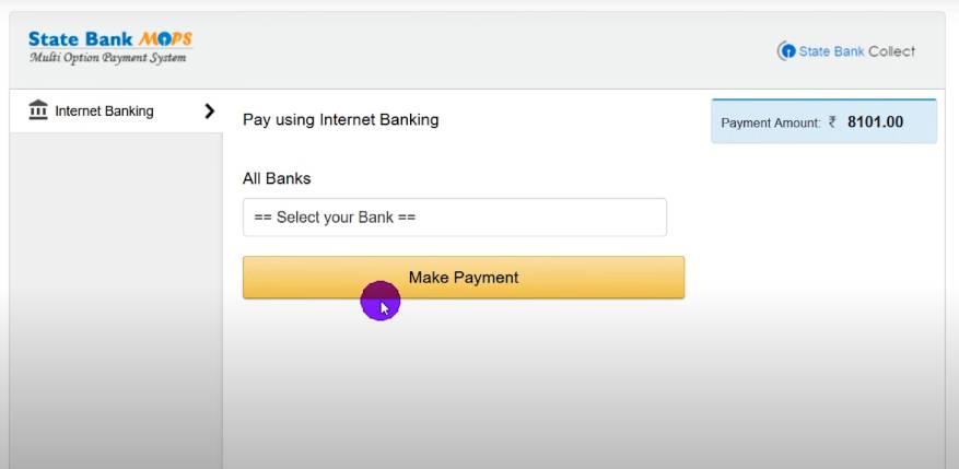 Step 5: On the next page, click on the ‘make payment’ button. You will be directed to the payment page. Do not close or refresh the browser.