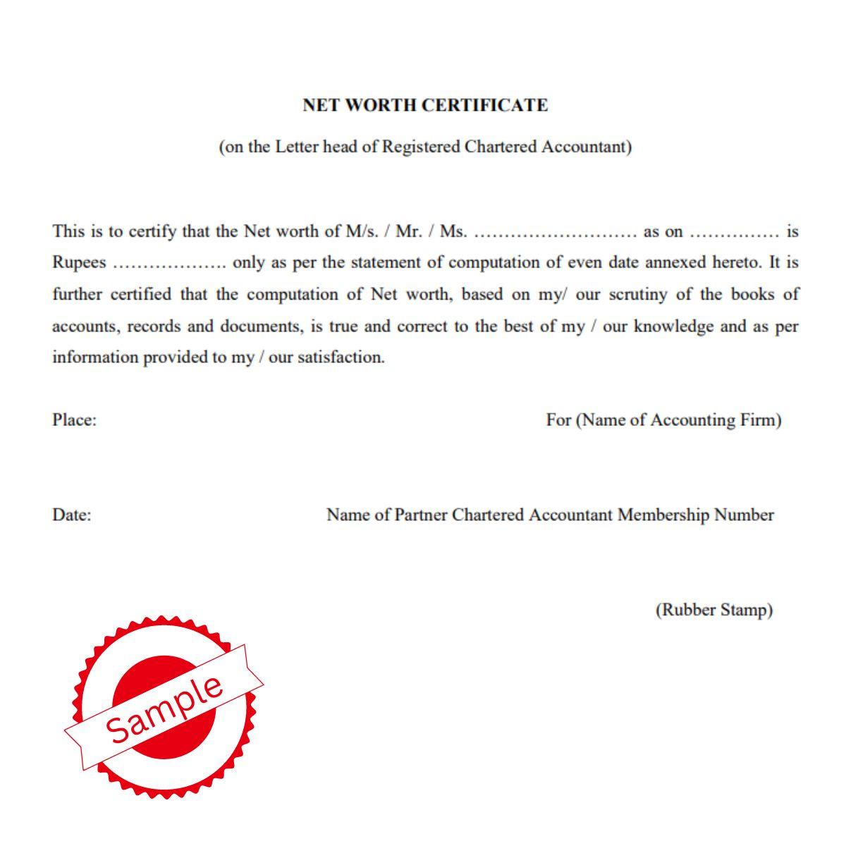A net worth certificate is a document that contains an individual or entity’s net worth. A chartered accountant certifies this certificate after carefully scrutinizing the individual or entity's book of accounts, records and documents, and total assets and liabilities of an individual or entity.