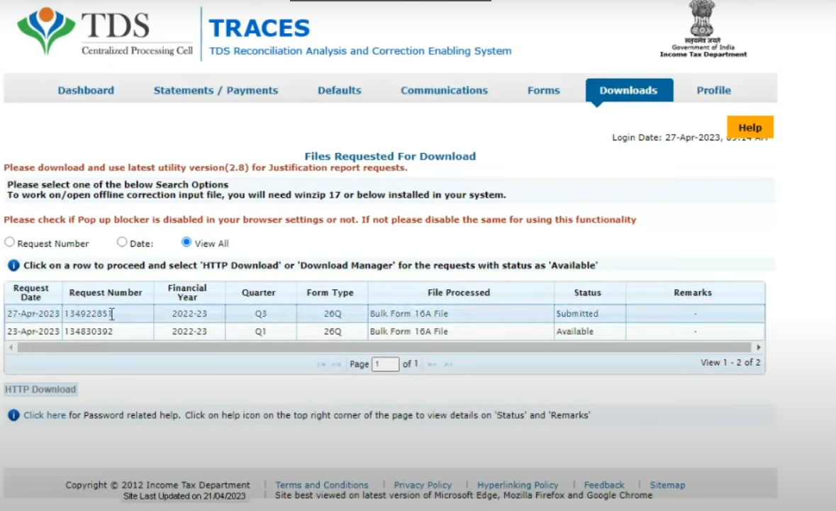 Step 9: Now, you need to enter the request number or request date and then choose ‘view all’. Click on the download option if the status is ‘Available’.