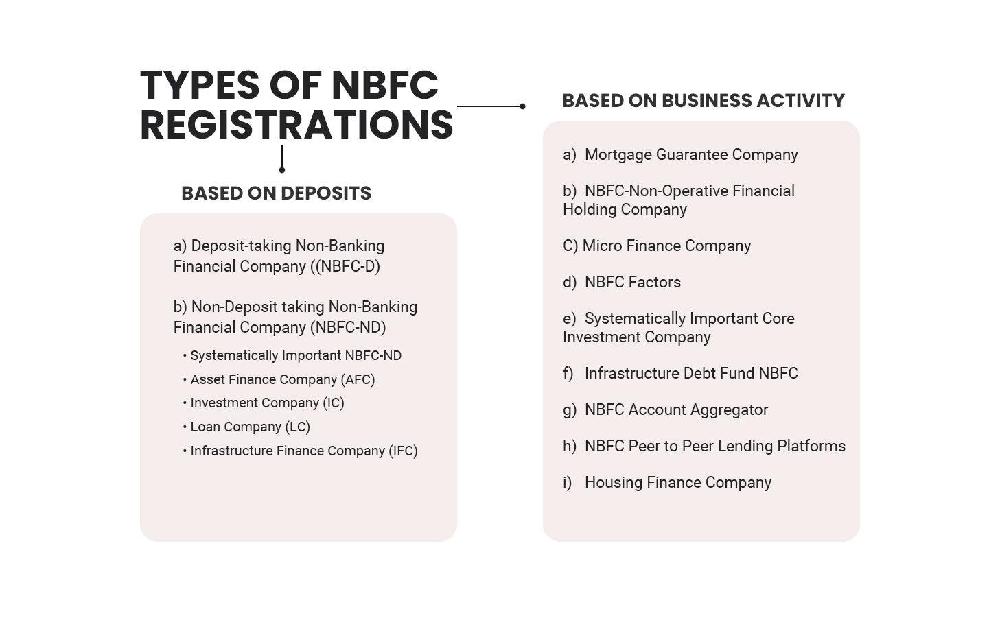 One can classify the NBFC registrations in the following ways: