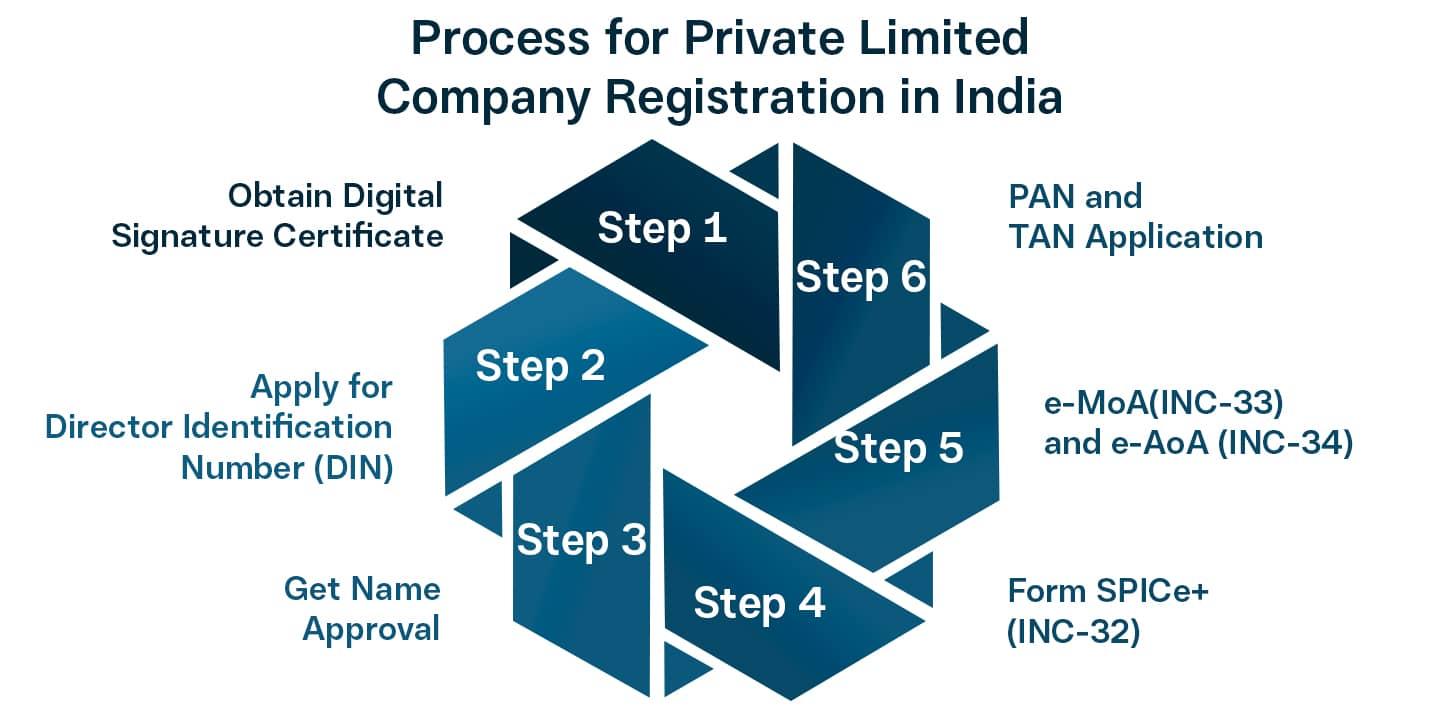 In order to start your business with such an entity, you must go through four simple steps. The first step is to obtain the DSC signature, and the second is to apply for the Director Identification Number. Third, get name approval and fill SPICe+ form and lastly obtain PAN and TAN number.