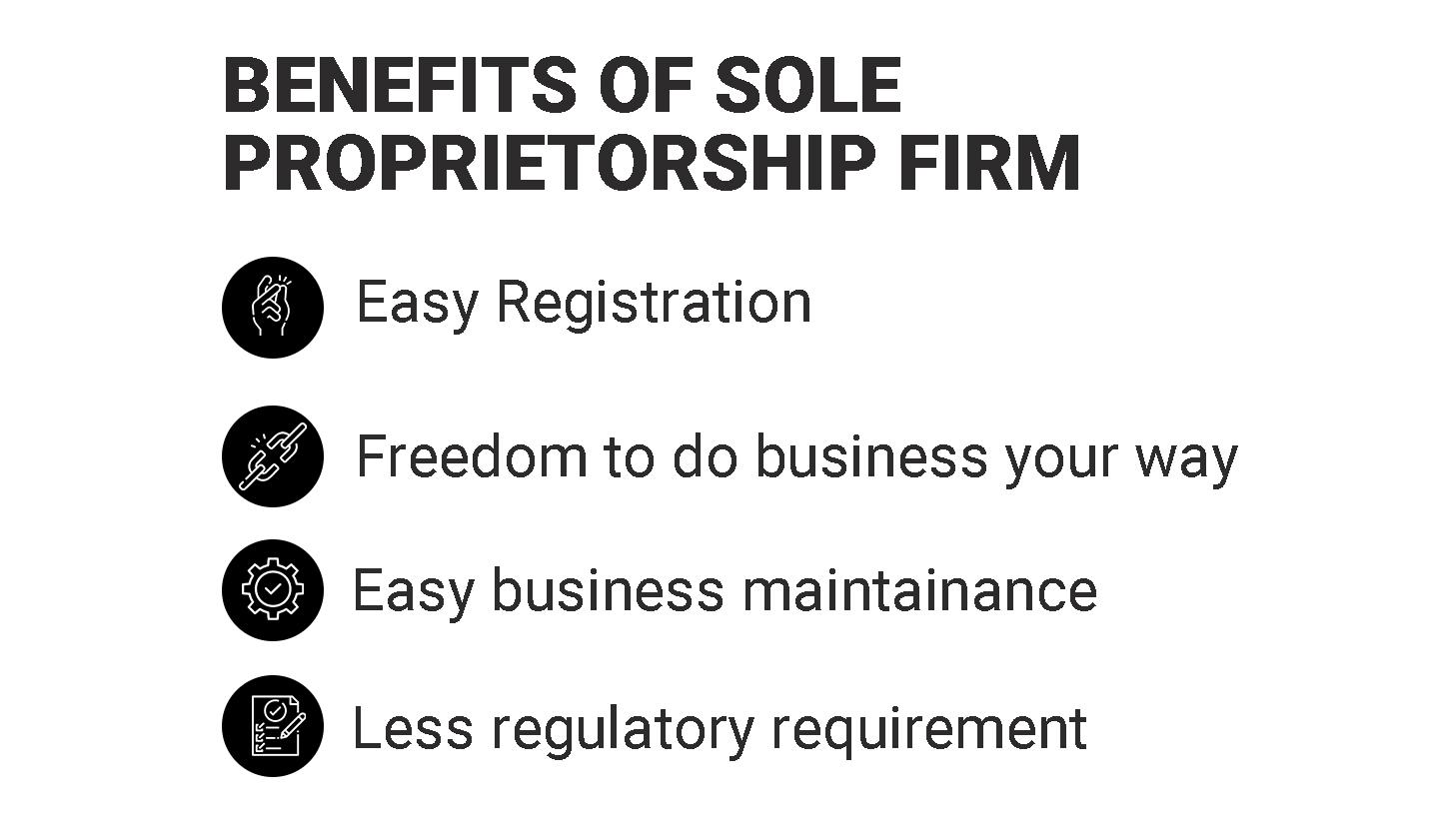 There is no concept of firm name registration. You can give any name to your sole Proprietorship – even your name would suffice. Because of so many lacks of restrictions, there are benefits to be had when you register a sole proprietorship in India.