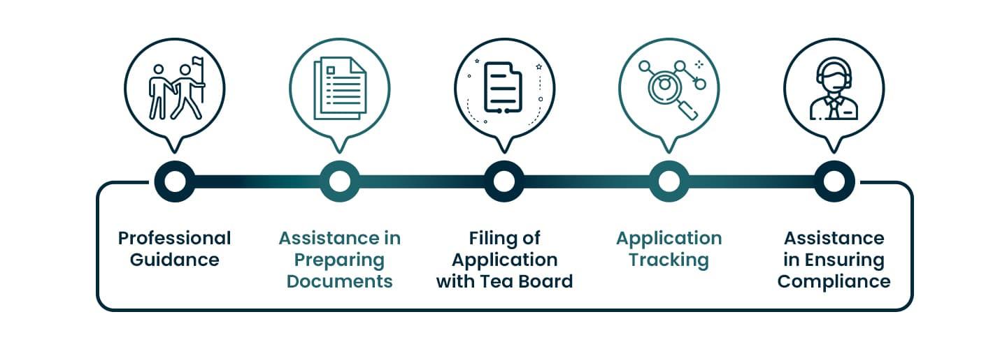 Right from the beginning of the application process, we will make sure that you meet all the compliance requirements and regulatory standards of the tea board.