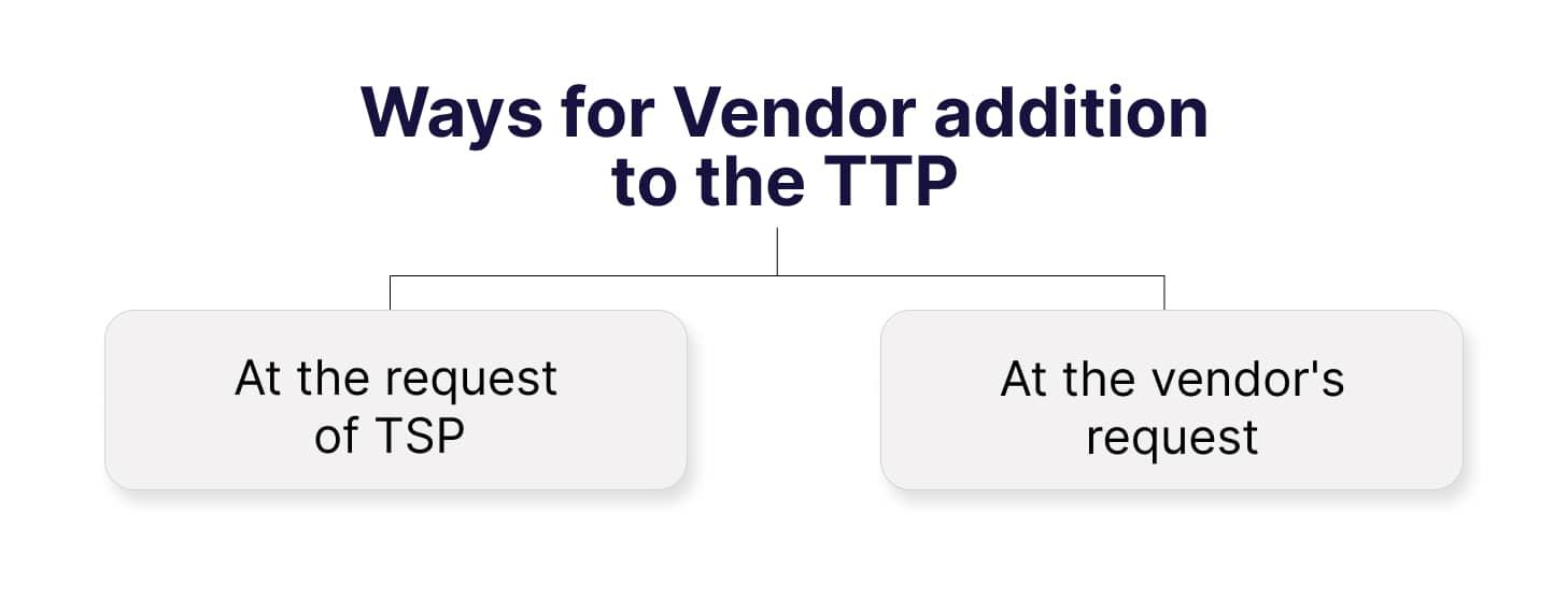 At the request of TSP: If the Telephone Service Providers enters vendor details that aren't among the trusted products, the TSP can request the portal to add the vendor and the product to the trusted list. The portal might do so only after thoroughly assessing the vendor and the source.